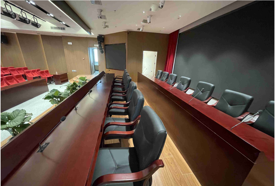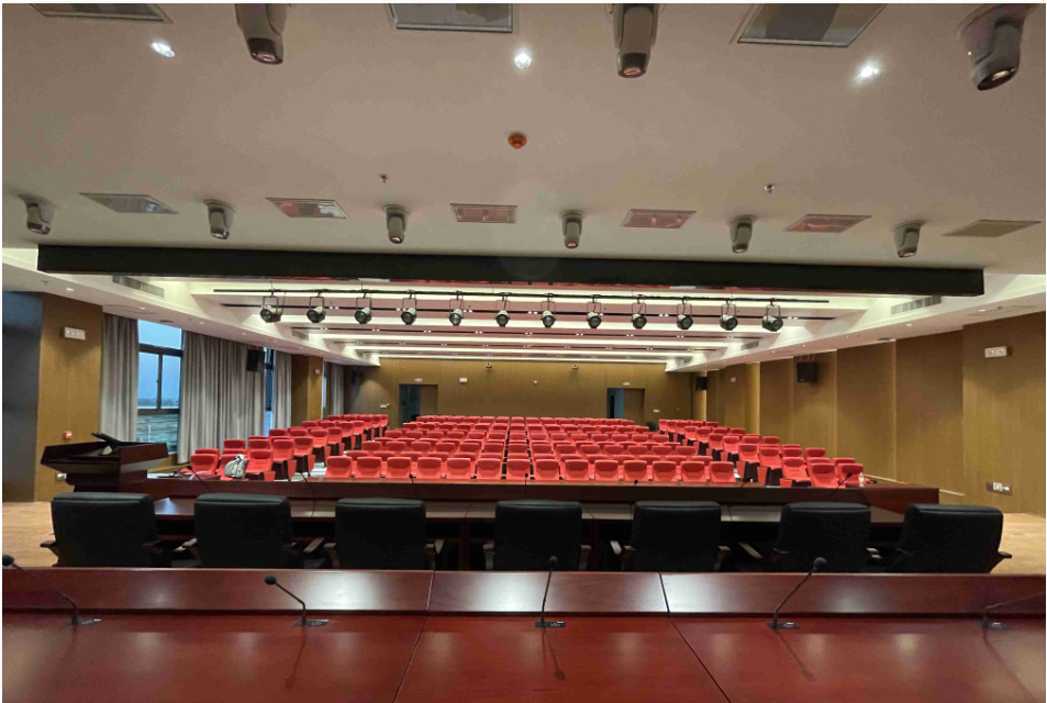 陜西渭南會議中心經(jīng)常舉辦各類大型會議,會議頻繁召開,對會議設(shè)備提出了更高的要求。HUAIN華音根據(jù)大型階梯報告廳和小型會議室的使用需求,選擇全數(shù)字嵌入式會議系統(tǒng)進行搭建使用。全數(shù)字嵌入式會議單元HY-6120系列根據(jù)桌面尺寸量身定制,全鋁合金面板內(nèi)嵌觸控亞克力面板,具備防水防塵功能;支持數(shù)量限制、先進先出、后進先出、主席允許、自由討論五種會議模式;拾音有效距離可達50-60cm,信號穩(wěn)定,發(fā)言無噪音電流影響。
