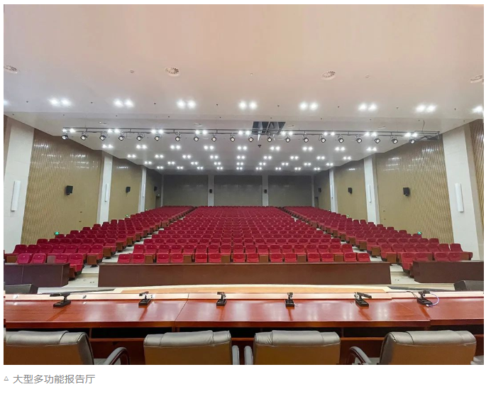 大型多功能報告廳可容納600余人,空間較大。要求多功能報告廳可滿足各類培訓、學術(shù)報告、研討交流會等大中型會議及大中型文藝演出等多種使用需求,能滿足會議討論、發(fā)言等語言擴聲使用功能,確保整套擴聲系統(tǒng)聲音飽滿通透,人聲清晰自然。