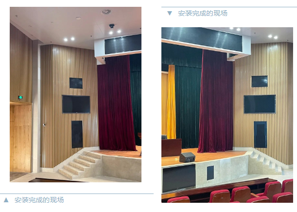 系統(tǒng)安裝完成后,客戶對此次解決方案帶來的聽覺體驗非常滿意,聲場覆蓋均勻人聲清晰飽滿且運行穩(wěn)定,滿足客戶使用需求。未來,整套系統(tǒng)將持續(xù)為校方提供強有力可靠的保障。