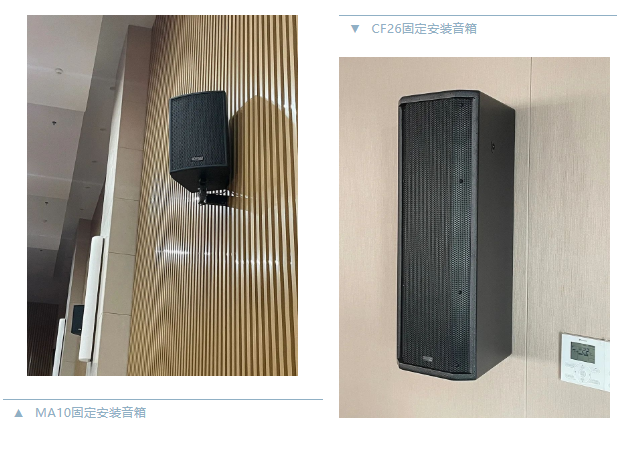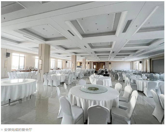 宴會廳需滿足大中型集會、聚餐及慶典活動等功能需求。宴會廳同樣采用了若干只M10固定安裝音箱好和若干臺MI系列數(shù)字功放。