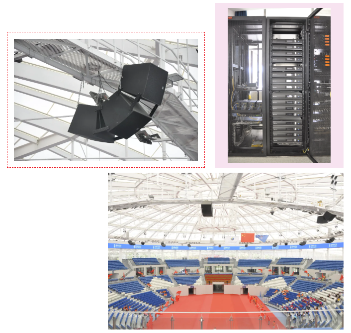 主場館內(nèi),EV和DYNACORD聯(lián)手呈現(xiàn)了一如既往的良好音質(zhì):EVH-1152D作為混響聲場的理想選擇,以其高解析力和均衡的角度覆蓋控制,為場地提供了優(yōu)異的語言清晰度和醇美音質(zhì),讓在場的每位觀眾和運(yùn)動員都能及時接收到信息,在一些應(yīng)用場景中對于音樂播放也顯得游刃有余,再加上DYNACORD的IPX功率放大器的功率支持和MXE5 混音矩陣的調(diào)控,整個擴(kuò)聲系統(tǒng)表現(xiàn)令人折服。