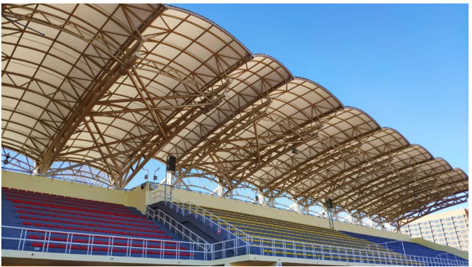 由于該體育場為改造項(xiàng)目,建設(shè)方無法提供音箱在頂棚安裝的條件,因此只能訂做安裝結(jié)構(gòu)進(jìn)行安裝。