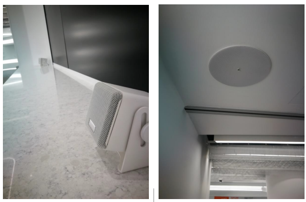 為了融入展示中心的設(shè)計(jì)觀感,選擇了德國EV的超緊湊型揚(yáng)聲器i4,而且特別從德國工廠定制了白色版本,搭配DR的高保真天花揚(yáng)聲器,在展示中心內(nèi)做到“只聞其聲不見音箱”的觀演效果,而且擴(kuò)聲系統(tǒng)的音質(zhì)保證世界級(jí)水準(zhǔn),讓來到展示廳的賓客產(chǎn)生愉悅的觀感,進(jìn)一步增強(qiáng)客戶體驗(yàn)。