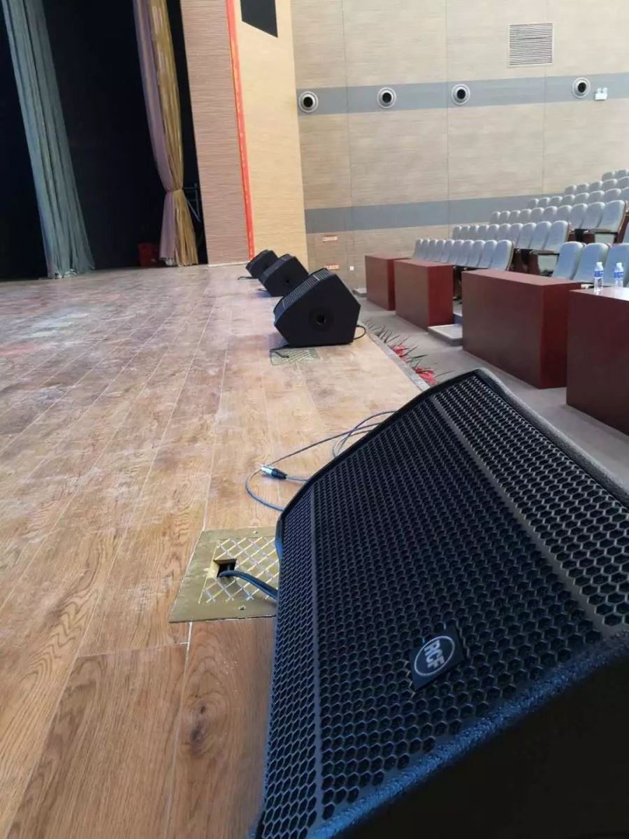 2只SUB8006-AS雙18”有源大功率超低音分別嵌于臺唇內(nèi)部,在提供強有力的低音效果同時保證了整體的美觀度。臺唇為6只ART708-A兩分頻音箱,舞臺返聽系統(tǒng)由4只ST12-SMA組成。為此次70周年慶典活動榮譽出聲,保障了校慶大會的順利召開!當(dāng)然也為學(xué)校舉辦的文藝演出、頒獎等活動提供了無與倫比的擴聲效果和重要“角色”當(dāng)擔(dān)!