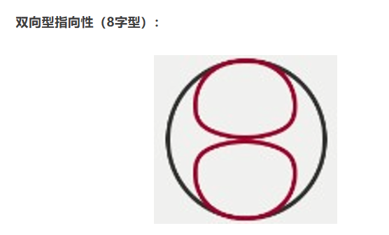 上圖顯示的是極性模式雙向型指向性(8字型),捕捉麥克風正面和背面的聲音,意味著對前后區(qū)域的聲音十分靈敏,而對兩側的聲音幾乎屏蔽。通常是鋁帶或大型振膜話筒所持有的“特技”。也是很多立體聲以及環(huán)繞立體聲錄音制式的必備技能。