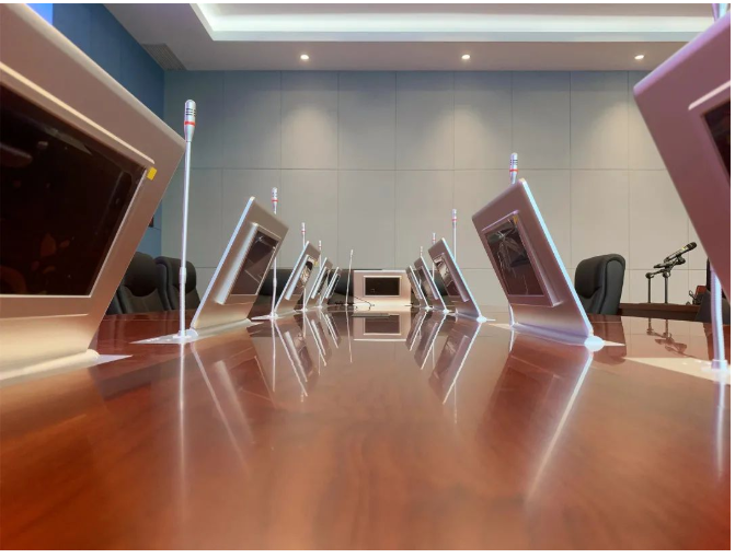 其發(fā)言話筒可以是鵝頸升降式話筒(有的可拔插)、頁(yè)面話筒、可個(gè)人收藏式手持式話筒、內(nèi)藏式話筒等。