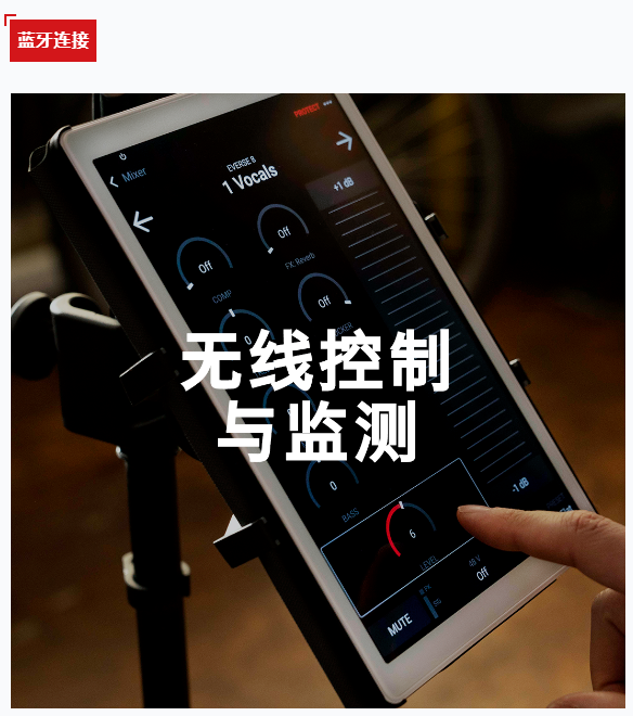 使用 EV QuickSmart APP可以輕松實(shí)現(xiàn)無(wú)線控制和監(jiān)控,該APP可用于通過(guò)手機(jī)或平板電腦調(diào)整所有音頻、效果和混音功能。直觀的用戶界面可以使用戶可以更專(zhuān)注于自己的演出表現(xiàn)而非設(shè)備硬件。集成的12V DC輸出端口可便捷的利用EVERSE 8電池為外部設(shè)備供電,非常適合為無(wú)線麥克風(fēng)系統(tǒng)供電——只需將選配的托盤(pán)附件安裝到 EVERSE 8 頂部,即可將接收器固定到位。對(duì)于立體聲應(yīng)用,EVERSE 8 支持藍(lán)牙真無(wú)線立體聲音頻流同時(shí)可為播放音樂(lè)的移動(dòng)設(shè)備提供充電端口。