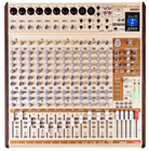 16路小型調(diào)音臺,10路麥克風(fēng)/4組立體聲輸入,可用PC和MAC電腦連接的立體聲USB音頻接口 (24-bit, 48 KHz),內(nèi)置SD卡錄播及2.4G藍(lán)牙連接功能,4編組,可選機(jī)架安裝組件(另購)。四個(gè)4段EQ立體聲通道(兩個(gè)帶有XLR輸入),3段EQ(單聲道),32/40位DFX處理器,處理器有16個(gè)程序,每個(gè)程序都有一個(gè)用戶可調(diào)參數(shù),單聲道75HZ低切濾波器,4個(gè)立體聲AUX返回,效果可監(jiān)視,具有INSERT和DIRECT OUT輸出,20級立體電平表。