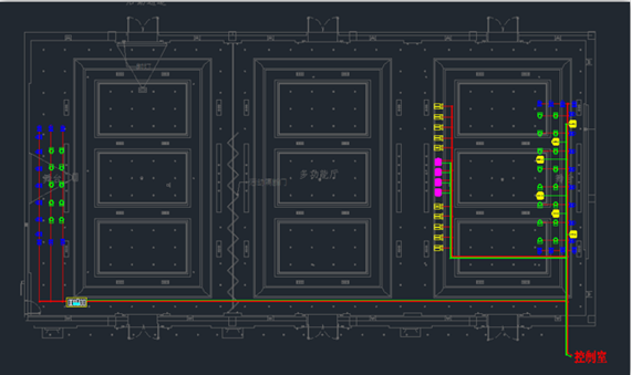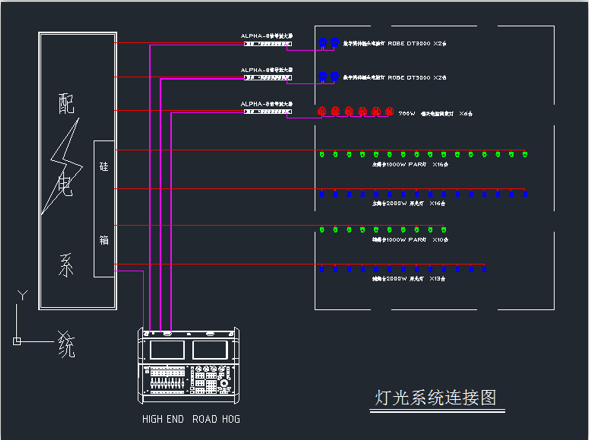 LED數(shù)字聚光燈具同時(shí)備多種彩色效果,并適當(dāng)增加電腦搖頭燈具和泡泡機(jī)、煙機(jī)等特效設(shè)備以滿足舞臺(tái)表演需求。