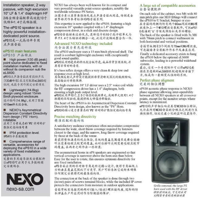 這里的環(huán)境十分優(yōu)雅,而且玻璃區(qū)域較多,不需要很強烈的擴聲系統(tǒng)。因此選擇部署NEXO的小型全頻系統(tǒng)。上海弘韻智能系統(tǒng)工程有限公司的設(shè)計人員利用NEXO專用仿真模擬聲壓測試軟件NS-1對場地進(jìn)行構(gòu)建,并與酒店方的團(tuán)隊討論選項和限制。最終選擇了NEXO ePS10全頻音箱,ID14同軸全頻音箱和IDS110超低頻音箱搭配使用。ePS10單10寸全頻音箱采用長沖程10寸低頻單元和1.4寸音圈高頻壓縮驅(qū)動,低音反射式設(shè)計,箱體利用樺木膠合板,堅固且重量輕。在70Hz到20KHz的頻響實現(xiàn)130dB的峰值聲壓,多用于小型主擴聲與舞臺返送監(jiān)聽。ID14的核心采用定制開發(fā)的同軸單元,1.3寸音圈的4寸低頻驅(qū)動器和1.4寸振膜的高頻驅(qū)動使它能輸出平滑,干凈的聲音??奢敵?16dB的峰值聲壓,兩種號角可改變擴散角度,讓它應(yīng)用到不同的環(huán)境中。作為NEXO現(xiàn)有產(chǎn)品體積最小的音箱,多用于小型環(huán)境補聲和全景聲。IDS110超低頻音箱采用長沖程10寸單元,可輸出125dB的峰值聲壓,多用于搭配ID系列的低頻補充。