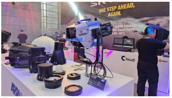 雅江光電充分利用展位空間,打造流線型結(jié)構(gòu),劃分設(shè)置“前臺(tái)區(qū)”、“ARCTIK展示區(qū)”、“SILVER STAR展示區(qū)”、“客戶休息區(qū)”、“控臺(tái)區(qū)”五大空間區(qū)域。分設(shè)“交互式投影展示位”、“頂部燈箱展示位”兩大燈光展示區(qū)域。有效展示雅江光電2023主推新品,為觀眾留下深刻印象。